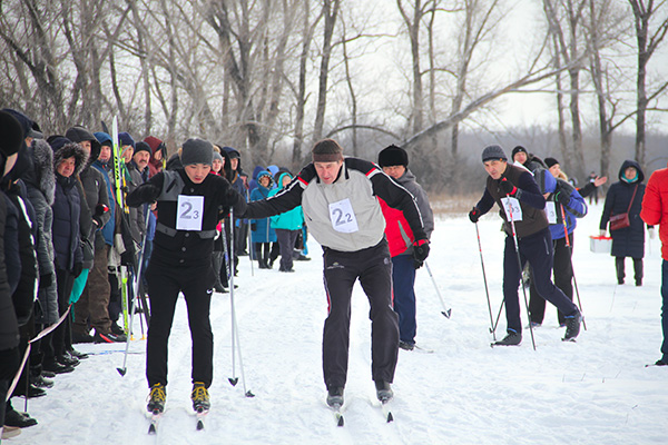 Команда ''Энергетик-Аксай'' в лыжной эстафете из программы XIX спартакиады ''Здоровье''. Эстафету передает А.Тутуров М.Геймуру. Январь 2019 г.