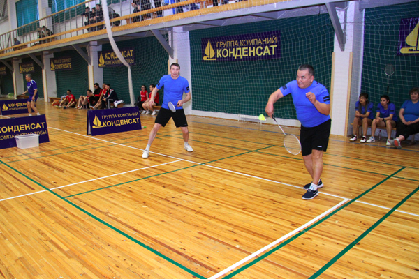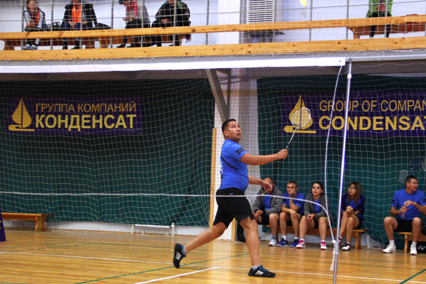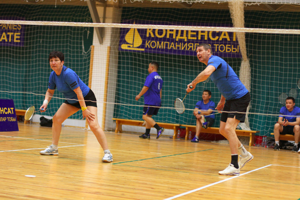 Соревнования по бадминтону в парном разряде из программы XVIII спартакиады ''Здоровье''. Честь команды ''Энергетик-Аксай'' защищает пара ветеранов М.Ергалиев (АО ''АГПЭ'')/С.Самарцев (ТОО''Аксайэнерго''). Апрель 2018 г.