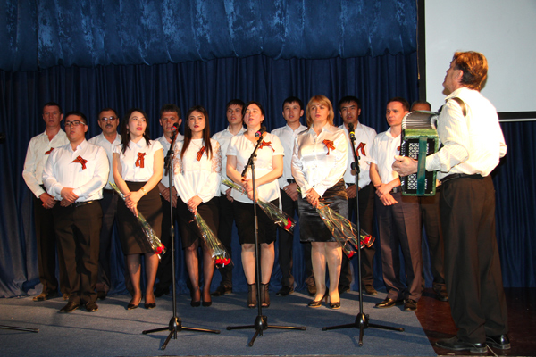 Творческий коллектив ''АГПЭ'' на сцене ежегодного концерта военно-патриотической песни, посвященного Дню Победы. Май 2019 г.