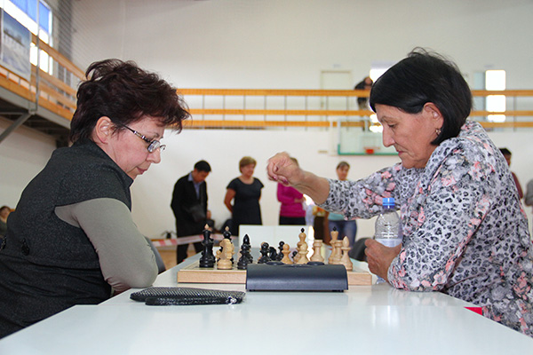 Соревнования по шахматам из программы XVIII спартакиады ''Здоровье''. За команду ''Нафта'' играет З.Богоутдинова (справа). Ноябрь 2017 г.