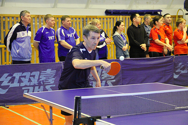 Соревнования по настольному теннису из программы XVIII спартакиады ''Здоровье''. Честь команды ''Нафта'' защищает В.Пономарев. Февраль 2018 г.