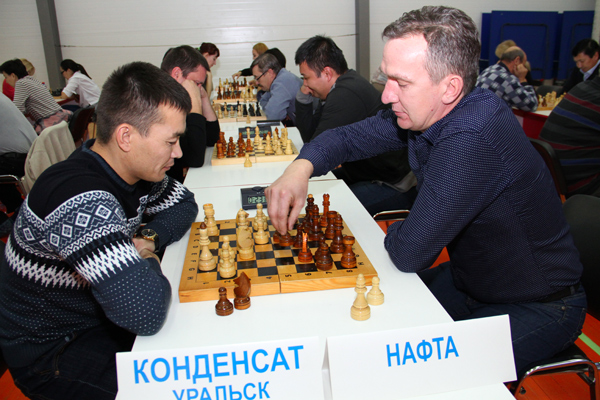 Команда ''Нафта'' (справа) в соревнованиях по шашкам из программы XIX спартакиады ''Здоровье''. Январь 2019 г.