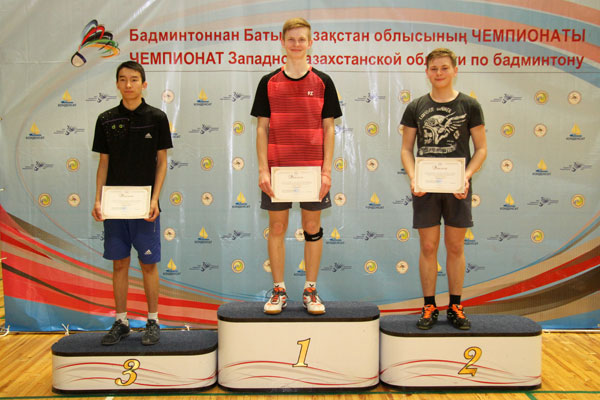 У юношей победу одержал также опытный Андрей Шалагин (ОДЮСШ, СОШ №13), второе место у Никиты Васильева (ОДЮСШ, СОШ №13), третье место у Нурхана Боранбаева (СОШ №47). Все ребята также неоднократно представляли нашу область на республиканских форумах бадминтонистов.