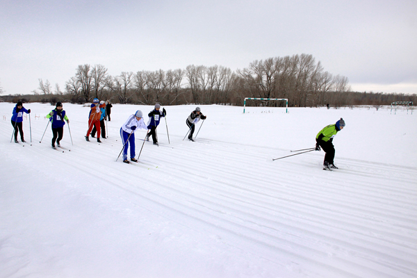 Спустя полчаса стартовала лыжная командная эстафета, которая, как и все предыдущие, стала интригующей и захватывающей с самого начала и до конца гонки. С первых метров дистанции основная борьба разгорелась между спортсменами «Жаикмуная» и «Энергетик-Уральска». Ольга Келазева из «Энергетика» в хорошем темпе повела гонку, а за ней буквально по пятам шла Ирина Хромцова («Жаикмунай») - неоднократная победительница данных соревнований. Эти две спортсменки прилично оторвались от конкуренток на первом 500-метровом отрезке гонки и передали эстафету спортсменам-ветеранам. На втором этапе «Жаикмунай» вышел вперед и уже не отдал своего преимущества до конца гонки. Финиш Павла Панфилова («Жаикмунай») был стремительным и победным. Вторыми стали лыжники «Энергетик-Уральска», третьими, попав в призовую тройку, финишировали лыжники «Энергетик-Аксая».