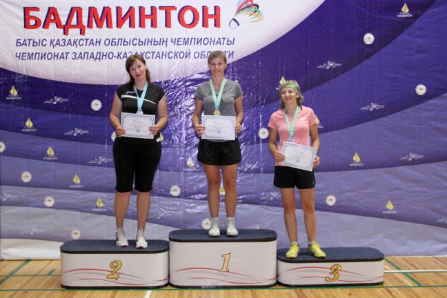 У женщин в одиночном разряде победила тренер по бадминтону ОДЮСШ ракеточных видов спорта Анастасия Витман, второе и третье места заняли сотрудники ТОО «ИНТЕК-ОНМР» Татьяна Чебакова и Татьяна Тюрина.