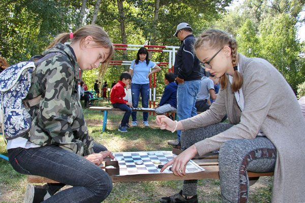 Следующим этапом спартакиады стал турнир по шашкам. Участники расположились за досками в тени деревьев и высчитывали наиболее верные и правильные ходы, которые должны были принести им победу. Лучше всех это удалось Ерхану Жалмуханову («АГПЭ») и Веронике Витман, которые и стали победителями в этой дисциплине. «Серебро» досталось Данилу Макаренко и Алине Наумовой (УНГГ), тройку призеров замкнули Дильназ Жумагерей («Батыс Энергоресурсы») и Трофим Сумкин («Конденсат-Аксай»).