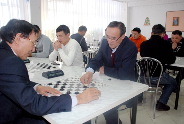 В 10.00 начался шашечный турнир среди мужчин и женщин. 16 участников и 10 участниц сыграли в соревнованиях по швейцарской системе в пять туров. Компьютер беспристрастно выбирал участникам очередных соперников, а те в свою очередь, за отведенные 30 минут игрового времени должны были найти аргументы в виде выигрышных вариантов на шашечной доске. В турнире у женщин лучше всего с этой задачей справилась Вера Точилина из команды АО «Уральскнефтегазгеология», набравшая 4,5 очка из 5 возможных. Две участницы набрали по 3,5 очка, и лучший дополнительный показатель вывел на второе место Елену Самарцеву («Конденсат-Аксай»), а третье место у Балхаш Инкаровой (ТОО «Интек-ОНМР»).