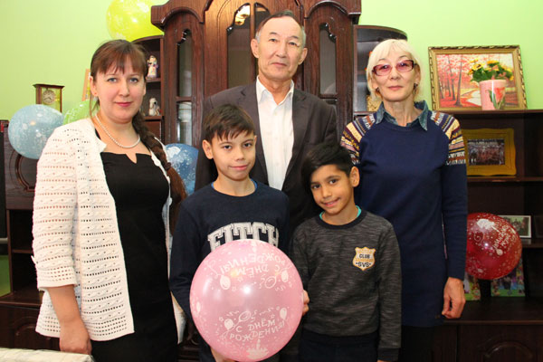 С пожеланиями успехов в учебе и спорте виновнику торжества, который с нетерпением ожидал приезда шефов и даже вышел их встречать к воротам, вручили спортивные кроссовки и музыкальную беспроводную колонку, которую можно носить с собой в руке. Эту торжественную миссию на себя взяли член Совета директоров Мурат Кенесов и заместитель главного бухгалтера АО «Конденсат» Елена Пивень.