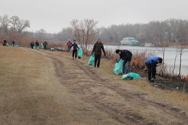 Работники Группы компаний «Конденсат» привели в порядок берега реки Урал и озера Теплое в районе Байтерек.