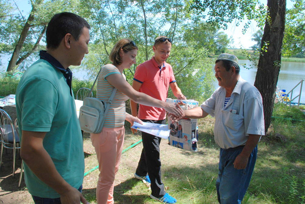 В назначенное время старта рыбаки, расположившись на берегу озера Теплое, на дебаркадере и прибрежных понтонах начали соревнование. Стоит отметить, что жаркая июльская погода и небольшой ветерок не стали затишьем для рыбного клева. Словно соскучившийся по рыбакам озерный карась с охотой шел на спортивный контакт. В итоге все участники соревнований отметились пойманными трофеями. Ровно через два часа судьи-организаторы из ОО «Конденсат-Келешек» пригласили участников на взвешивание улова. Пройдя эту довольно таки веселую рыбацкую процедуру, участники выяснили, кто из них оказался более удачливым и умелым в этот день. Самый большой улов – 3 кг 230 г оказался у Куспана Султанова из ТОО «ИНТЕК-ОНМР», второе место занял Виталий Лапшин (ТОО «Батысэнергоресурсы»), третье - Владислав Котиков (ТОО «ИНТЕК-ОНМР»). Самым юным участником оказался Санжар Айтмагамбетов, а самый большой карась весом в 315 граммов оказался в садке у Виталия Лапшина. Все победители и призеры в номинациях были отмечены дипломами и памятными призами организаторов.