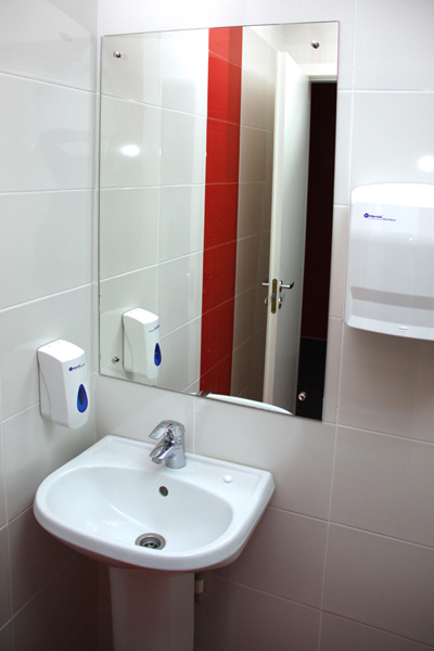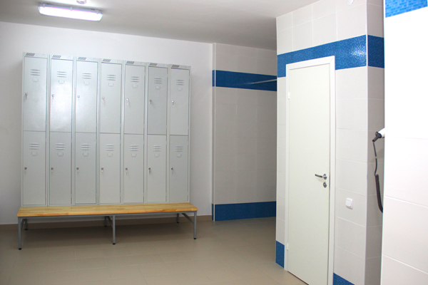В административном блоке разместились четыре просторные раздевалки с индивидуальными шкафчиками на 176 человек, душевыми и санузлами. Здесь же находятся комнаты для тренеров, вспомогательные помещения. На первом этаже есть спортмагазин, где будет предложен большой выбор спортивного инвентаря, одежды и обуви для соответствующих видов спорта. Все здание оборудовано новейшими системами кондиционирования и приточно-вытяжной вентиляции, автономным отоплением, горячим и холодным водоснабжением, а также единой системой пожарной и охранной сигнализации с внутренним водяным пожаротушением, надежной электронной пропускной системой и беспроводным интернетом Wi-Fi.