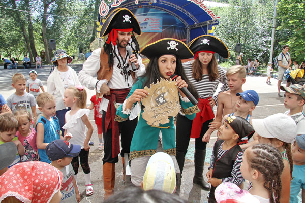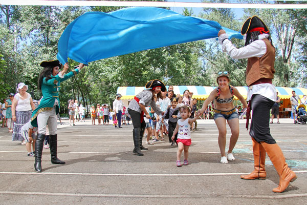 После веселого капустника и небольшого перерыва на обед праздник продолжился: пока детвора под руководством еще одного конденсатовского друга Руслана Джумахметова рыскала по Карибскому морю в поисках пиратского клада, на спортивной площадке за звание лучших сражались семейные команды.