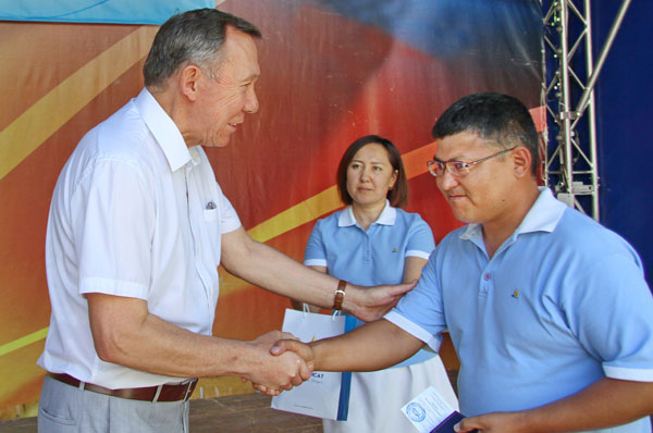 По сложившейся традиции празднование очередной годовщины «Конденсата» проходит в кемпинге «Мечта», куда, кроме самих конденсатовцев и членов их семей, съезжаются друзья и партнеры консорциума. Не стал исключением и этот год. С самого утра к кемпингу стягивались автобусы и легковые автомобили, и к 11 часам – началу праздника, на берегах озера Теплое уже яблоку негде было упасть. Все стремились разделить праздник с любимой компанией, которая для большинства, без преувеличения, является второй семьей. По традиции, открыл праздник Председатель Совета Группы компаний «Конденсат» Валерий ДЖУНУСОВ. Он рассказал, что многие из амбициозных задач, поставленных на этот год, успешно решены, несмотря на кризисные явления в экономике. Большинство компаний завершили год с положительным финансовым результатом. А бюджет государства получил от Группы компаний налогов и различных платежей в сумме 3 миллиарда 700 миллионов тенге.