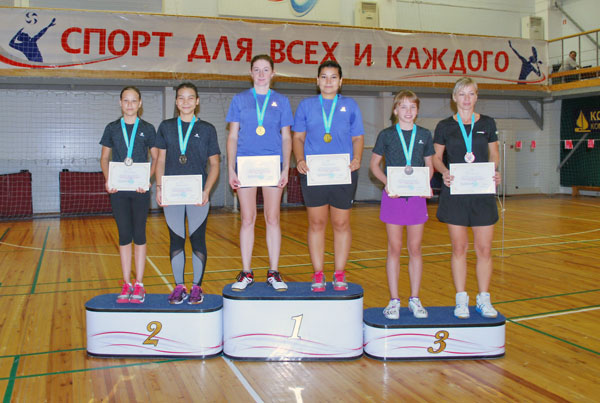 У женщин чемпионское звание покорилось юной школьнице Наргизе Рахметуллаевой, которая учится в 9 классе СОШ №47 и также занимается на отделении бадминтона у Н. Толкачевой и А. Клемца. В двух упорнейших партиях она победила мастера спорта РК Айдану Бугентаеву, которая представляет отделение бадминтона в Аксае. Третье место в упорном поединке из трех сетов завоевала Наталья Толкачева, победившая Инну Валееву (школа-лицей №35).