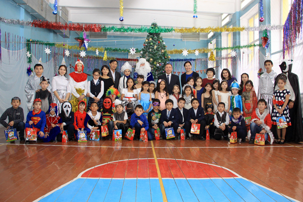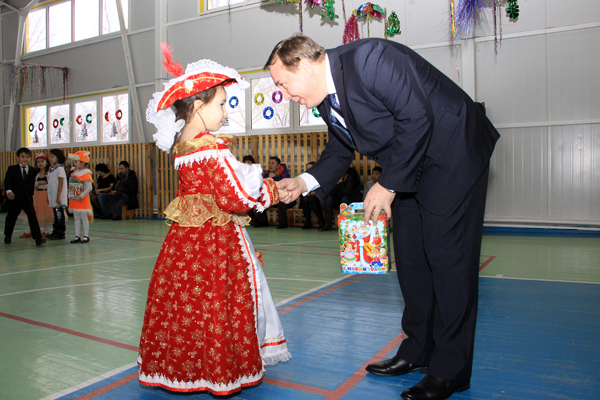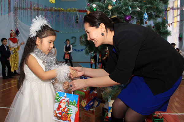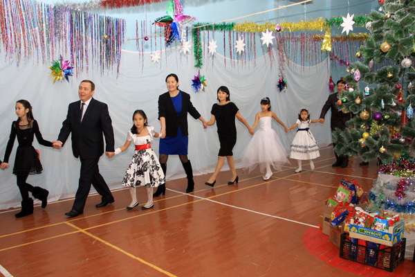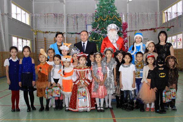 Как всегда, наиболее празднично встреча с шефами прошла в СОШ №40. Педагоги похвалились успешно пройденной аттестацией, которая закончилась накануне, и 100-процентной успеваемостью. Учащиеся четвертых, девятых и одиннадцатых классов показали отличные результаты на контрольных тестированиях. Здесь учатся 653 ребенка, не считая мини-центра, в том числе 74 отличника и 187 ударников. Новогодние елки в этой школе проводят полностью своими силами, привлекая старшеклассников – членов юношеской организации «Жас Улан» в качестве ведущих и аниматоров. Около 50 детишек из малообеспеченных семей пришли на встречу с шефами и с удовольствием водили вместе с ними хороводы вокруг нарядной елки. В ролях Ақшақар (Снегурочки) и Аяз Ата (Деда Мороза) выступили хореограф и учитель технологии школы, а учитель музыки Айдарбек ХАЙРУЛЛИН порадовал всех своим вокалом, исполняя вживую одну песню за другой.