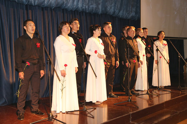 По доброй традиции концерт открыли самые юные его участники – дети работников Группы компаний «Конденсат». Азиза АЙТМАГАМБЕТОВА, Эмилия БАХТИОЗИНА, Ирина МЕЛЬНИКОВА, Егор ЧЕКАЛИН, Михаил МУРНОВ, Арина НИКОЛЬЧЕНКО, Анна КУ, Елена СТЕПАНИЩЕВА, Ильсия РАМАЗАНОВА, Анастасия и Елизавета ГУЛЕМБО, Даниил СЕМЕНОВ, Салтанат ТУГАЕВА и Светлана ПОДХВАТИЛИНА вдохновенно исполнили пронзительную «Песню о маленьком трубаче» - о мальчике, поднявшем в бой с помощью трубы целый полк. Потрясающе красиво прозвучала разложенная на мужские и женские голоса песня «Эх, дороги!..» в исполнении хора ТОО «Батыс Энергоресурсы». Трудно было поверить, что этот коллектив любителей песни, а не профессионалов. Некоторые коллективы вернулись к известным на протяжении разных десятилетий строкам, которые просили исполнить ветераны, и каждый постарался придать старой песне новое звучание. А зал дружно откликался громкими аплодисментами на «Катюшу» и другие песни. Другие выбрали для исполнения более современные песни о войне. «Письмо отца» хор АО «Конденсат-Уральск» спел светло, чисто и задушевно. Очень искренне, трогательно до слез прозвучала песня-реквием «Журавли» (АО «Конденсат-Аксай»), посвященная погибшим солдатам. Бурные овации сорвала и музыкальная композиция «Едут по Берлину казаки» (ТОО «Батыс Пауэр»), которая родилась в светлый День Победы. Зрители восхищались интересной подачей, разнообразием выбранных жанров и высоким уровнем исполнения. Своим выступлением конденсатовцы благодарили фронтовиков за мир на земле, преклоняясь перед их подвигами. Заключительным аккордом и победным гимном традиционно стала легендарная песня «День Победы», которую вместе исполнили все участники фестиваля.