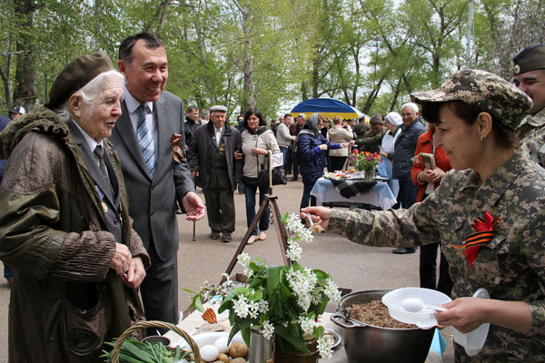 Эхо того далекого майского дня – первого дня мира – до сих пор звучит в наших сердцах, отзываясь в памяти дорогим нам праздником. И потому мероприятие, посвященное Дню Великой Победы, для конденсатовцев - настоящее действо, где есть место не только щемящей фронтовой песне, но и военной удали и ловкости и даже ароматной солдатской каше в котелке, которая пахнет дымком от костра. Заметим, что готовятся в консорциуме к этому очень ответственно. За несколько месяцев вперед разрабатываются сценарии выступлений, подбираются песни, идут репетиции. Военно-патриотическое воспитание и преемственность поколений является приоритетной и неотъемлемой частью политики компании, а значит - не терпит поверхностного подхода. Особое значение придается каждой детали праздника с учетом представленной военной атрибутики, освещения, видео-, фото- и музыкального сопровождения и, конечно же, чтобы было комфортно нашим дорогим подшефным ветеранам, которым на протяжении вот уже более 10 лет адресуется всеобщее уважение, любовь и признательность. Эту заботу «Конденсат» подкрепляет постоянной моральной и материальной поддержкой в повседневной жизни. Словно именно для фронтовиков в этот день по дороге в «Мечту» восходит яркое солнце, распускаются степные тюльпаны, а деревья одевают свой пышный зеленый «костюм», наполняя кемпинг чудесным ароматом весеннего цветения и создавая светлое настроение.