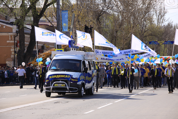 Конденсатовцы прошли дружной, красочно оформленной транспарантами, флагами и шарами колонной, пели свой гимн. Такой оптимизм вполне гармонировал с их новыми трудовыми успехами, ведь Группа компаний «Конденсат» продолжает вносить весомый вклад в экономическое развитие Приуралья и всей республики.