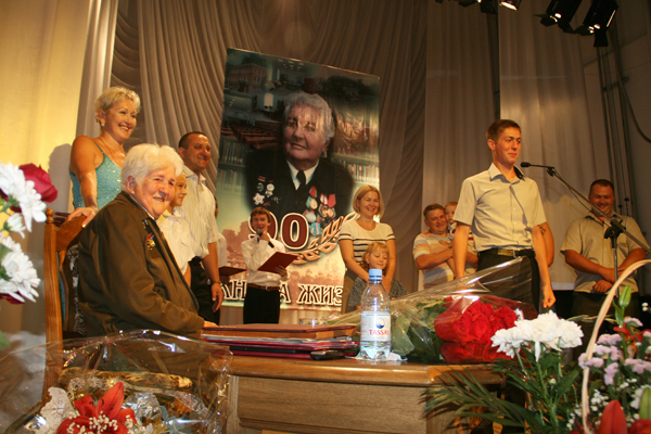 Юбилярша скромно и с благодарностью принимала поздравления и в честь нее красиво исполненные песни. И только по тому, как иногда искрились ее глаза, можно было понять, с каким трепетным волнением ложатся на душу воспоминания о былом. Сцена была устлана цветами. В подарок от работников областной библиотеки ветерану вручили мультимедийную книгу, в которой представлен жизненный путь героини. Осталась верна своей доброй традиции и Группа компаний «Конденсат», которая бережно относится к своим подшефным ветеранам Великой Отечественной войны.