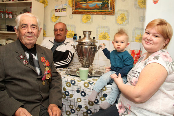 И вот Петр, внучка Наталья, правнук Александр и, конечно же, сам Александр Иванович вновь беседуют около сделанного им самовара.