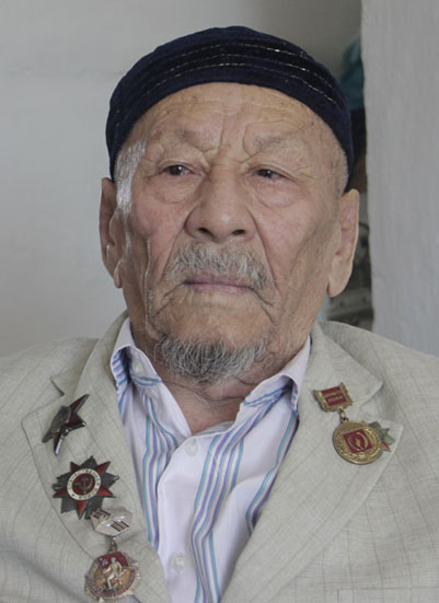 Оразай Муканулы принимает в своей небольшой комнате. В углу кровать. Рядом с ней костыли и столик, на котором клетка с канарейкой, советский светильник и транзистор – по старой традиции единственный источник новостей. На стене как ценная вещь висит пустой бумажный пакет с наклейкой «70 лет Победе от акима Бурлинского района». В черной бархатной тюбетейке, свежей полосатой рубашке и бежевом пиджаке Оразай-ата сидит в инвалидной коляске. В прошлом году ему выше колена ампутировали раненную на войне ногу. Взгляд ветерана мужественен и проницателен. Как принято у аксакалов, Кумыскалиев интересуется, откуда я родом, кто родители и затем приступает к тяжелому рассказу о войне.
