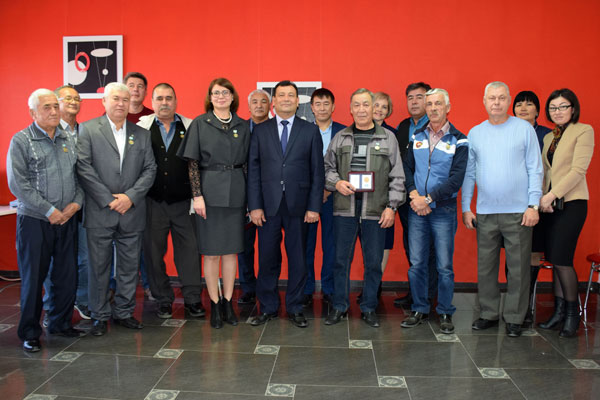 Продолжением юбилейных торжеств стал визит главы района в центр развития персонала «Конденсат» для вручения наград работникам предприятия в качестве признания заслуг коллектива. Медалью «Городу Аксаю 50 лет» награждены генеральный директор АО «Конденсат» Нурия МУФТЕЕВА, операторы технологических установок Жеткен САРСЕНОВ и Максот ЖАНДАЛИЕВ, водитель Иван КОЗЛОВ, а также нынешние пенсионеры Гарипулла ЕРГАЛИЕВ, проработавший в компании 18 лет оператором газовой котельной, и Сабит САРСЕНОВ, в прошлом электрослесарь. Все награжденные – ветераны АО «Конденсат».