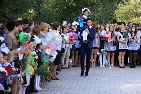 Юрисконсульт АО «Конденсат» Дина ЕРСАЙЫН поздравила участников торжества с Днем знаний, вместе с педагогами школы она участвовала во вручении первоклассникам подарка президента Нурсултана Назарбаева – книги «Менiң Отаным Қазақстан!» Такие подарки, кстати, получили в этот день все первоклассники страны. Ученики школы блеснули талантами, показав несколько вокальных и танцевальных номеров. И вот настал волнующий момент: прозвенел первый звонок, учащиеся направляются в классы. Новый учебный год начался!