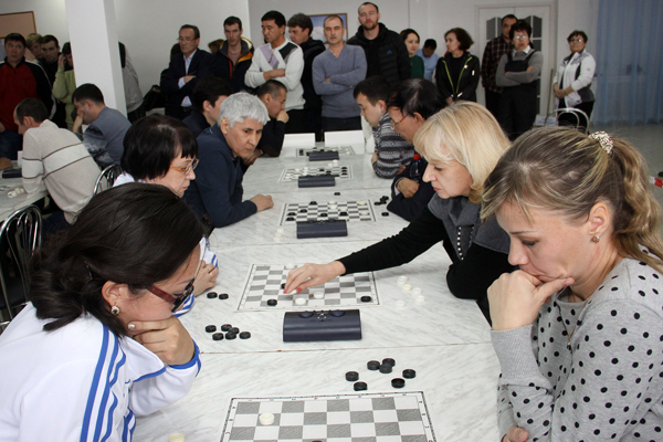 Около 70 любителей шашек из восьми коллективов вышли на старт командного турнира. За каждую команду выступали пять игроков - трое мужчин, один из которых обязательно старше 40 лет, и две женщины. Еще три игрока были в запасе. Каждому участнику в партии отводилось по 30 минут на обдумывание ходов – что вроде бы и немало, но дальнейший ход событий показал, что время может стать решающим фактором и в интеллектуальной борьбе.