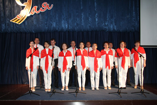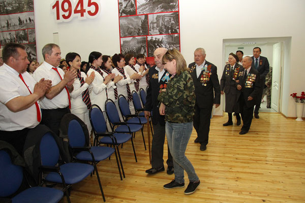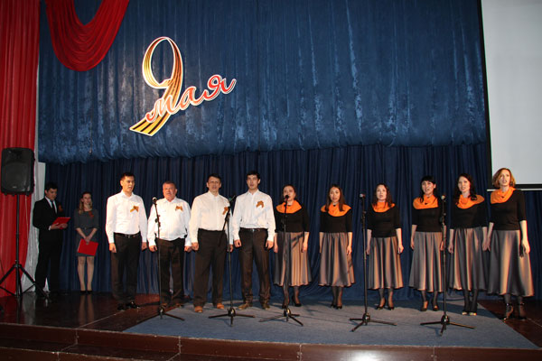 После короткого перерыва началась самая торжественная и душевная часть праздника – поздравление ветеранов, вручение им подарков В.К. Джунусовым, который в 2005 году предложил взять шефство над группой ветеранов, и конкурс военной песни.