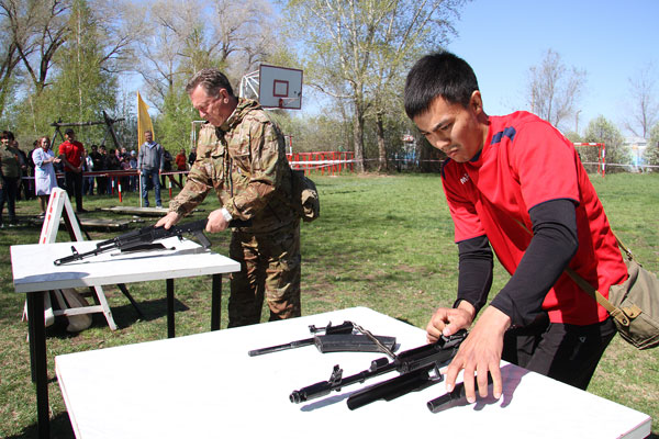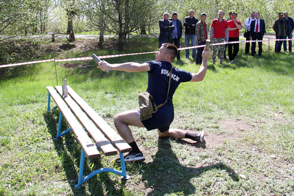 Праздник традиционно начинается с военно-спортивной эстафеты. Участникам нужно на время разобрать и собрать автомат Калашникова – самое, кстати, узнаваемое оружие на планете, - а затем передать эстафету следующему участнику. Следующий этап – надевание противогаза, преодоление «мышеловки» (низко натянутая сетка) и метание гранат в условный танк. Далее стометровка, подтягивание, выбивание мишени из пневматической винтовки, а затем «змейка», «рукоход» и бревно. На последнем этапе умаявшегося участника берут под свою опеку санитарки. Их задача – правильно наложить повязку на голову «раненного бойца», которого после этого на носилках доставляют к финишу. На словах это все выглядит достаточно просто. Но невозможно передать даже доли того накала эмоций, который царит на площадке соревнований. Каждая команда – а представлено было 8 от крупных предприятий консорциума – работает с абсолютной самоотдачей, ведь за них болеют коллеги, а в «специальной ложе» за их соревнованиями наблюдают ветераны.