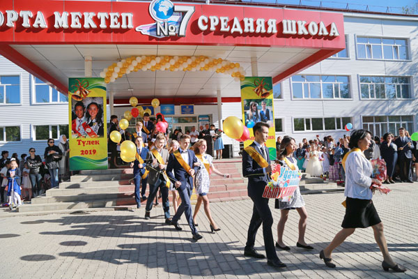 В СОШ №7 стены родного учебного заведения покидают 108 выпускников. Как рассказали в администрации, 59 из них изъявили желание принять участие в ЕНТ. Теплые слова в адрес выпускников прозвучали от председателя совета директоров АО «Конденсат», депутата маслихата ЗКО Ф. Бахтиозина, который поздравил ребят и девчат подшефной школы не только от себя лично, но и от имени всей ГК «Конденсат»: