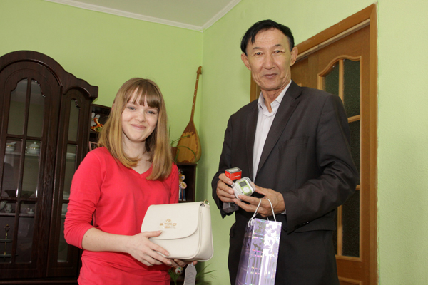 В этот день, как и положено, она была распорядительницей праздника – встречала гостей у самых ворот, накрывала на стол и внимательно следила, чтобы никто не остался без угощения. Конечно, традиция вручения подарка от шефов не была нарушена и в этот раз – представитель компании Мурат КЕНЕСОВ вручил имениннице целый набор полезных вещей: МР3-плейер с соответствующей гарнитурой, красивую дамскую сумочку и, как водится, сладости и фрукты к праздничному столу. После общей фотографии на память дети и гости принялись чаевничать, – где ж еще, как не за чашкой ароматного чая, можно поговорить по душам?