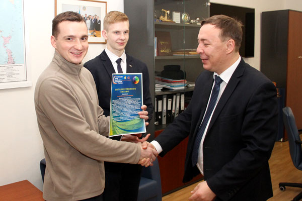 - От Федерации бадминтона области, от коллектива Группы компаний и лично ее руководителя Валерия Кинжегалиевича Джунусова и от себя, конечно, хочу поблагодарить вас за активное участие в проведении республиканского и международных турниров по бадминтону, которые состоялись в ноябре в Уральске. Там вы участвовали и как спортсмен, и как судья, и прекрасно выступили в обеих ролях. Надеемся, что вы свяжете свою дальнейшую спортивную судьбу с нашим регионом, одержите еще немало побед и впоследствии внесете вклад в развитие бадминтона уже в качестве тренера, - обратился к Шалагину Фарид Наильевич. – В свою очередь, тренеру Андрею Клемцу также выражаем благодарность за подготовку таких кадров, как его тезка.