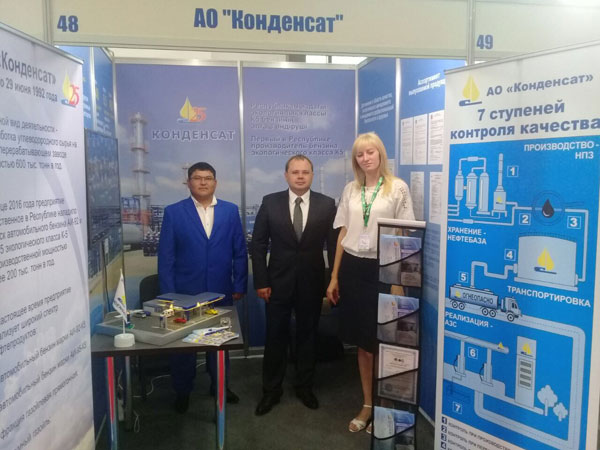 Напомним, что АО «Конденсат» стало победителем регионального конкурса-выставки «Лучший товар Казахстана-2017» в июне нынешнего года за реализацию бензина марок АИ-92 К5 и АИ-95 К5. Компания первой в стране успешно презентовала минувшей осенью сложнейший производственный комплекс, построенный с применением новейших технологий США и Франции, по производству бензина экологического класса К5. Именно приобретение дорогостоящей уникальной технологии, а не применение различных присадок, делает качество бензина АО «Конденсат», соответствующим евростандарту. Этот инновационный проект позволяет производить более 200 тысяч тонн бензина марок АИ-92 и АИ-95 в год. Данное автомобильное топливо активно реализуется через собственные и сторонние сети АЗС. С момента запуска проекта АО «Конденсат» реализовал около 40 миллионов литров бензинов АИ-92 К5 и АИ-95 К5, более миллиона автомобилистов уже смогли заправить свои автомобили высококачественным бензином европейского качества, использование которого позволяет значительно сокращать количество токсичных выбросов в атмосферу. По мнению представителей компании, участвующих в выставке, АО «Конденсат», без всякого сомнения, имеет возможность и право продвигать свои новые продукты под маркой «Сделано в Казахстане».