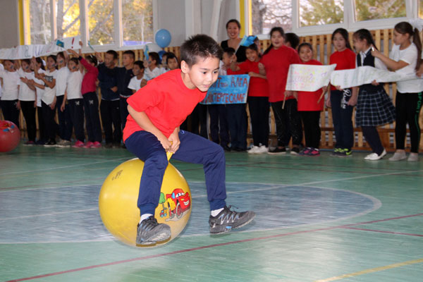 Надо сказать, все участники справились с заданиями отлично. Конечно, с мячом лучше управлялись мальчишки, а вот в тараканьих бегах, на скакалках и с шарами ловчее и быстрее оказались девочки. Как отметил представитель молодежного крыла партии «Нур Отан» Ерлик ШАМГАЛИЕВ, все ребята – молодцы, победителей определить было сложно.