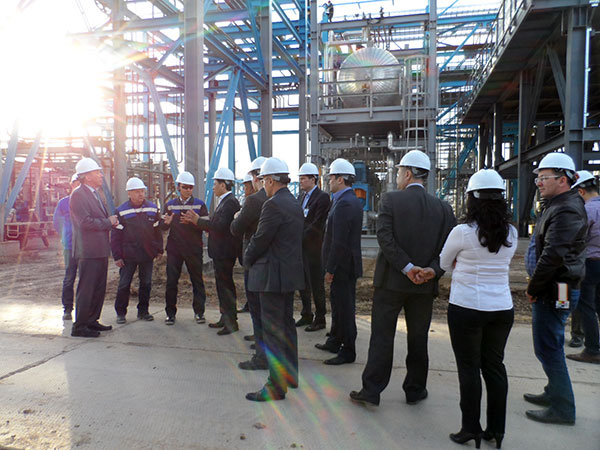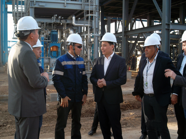 Руководство компании в лице председателя Совета директоров В.К.Джунусова, генерального директора Э.В.Джунусова, директора строительства А.Ф.Маючего ознакомили акима с сутью и целью проекта : «Строительство 2-ой очереди малотоннажного завода для производства моторных топлив экологического класса К5» и показали объекты завершающейся стадии строительно-монтажных работ, а также участки, на которых начаты пуско-наладочные работы.