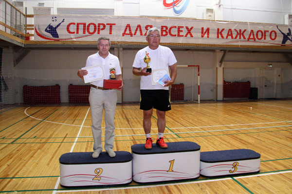 В финале у мужчин старше 50 лет победителем стал наш гость из Костаная, опытный тренер ДЮСШ по бадминтону, мастер спорта СССР Александр Крохалев. Второе место у сотрудника института сейсмологии Александра Воецкого (г. Алматы). Третье место у Владимира Лачугина (КПО б.в.) и Вячеслава Широбокова (КПО б.в.).