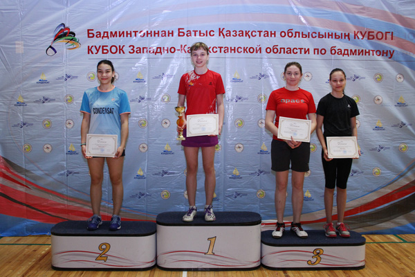 В женском одиночном разряде, вновь, в финале, встретились молодые спортсменки-юниорки Вероника Витман (СОШ №8, ОДЮСШ) и Наргиза Рахметуллаева (СОШ №47, ОДЮСШ). За последние пару лет их прогресс в игре также очевиден, и они показывают быстрый, атакующий бадминтон. В финале в трех напряженных партиях победу одержала Вероника Витман. Третье место разделили старший тренер области по бадминтону Наталья Совена и прогрессирующая от турнира к турниру Ева Бутпаева (СОШ №7, ОДЮСШ).