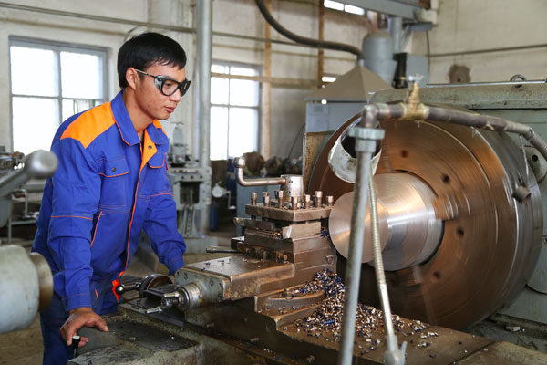 У станка токарь А. Аталиев